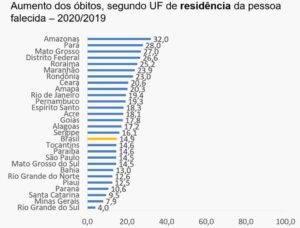 A pesquisa apontou também que Manaus foi a 5ª capital do Brasil a registrar a maior alta de mortes entre 2019 e 2020, com um aumento de 36%.