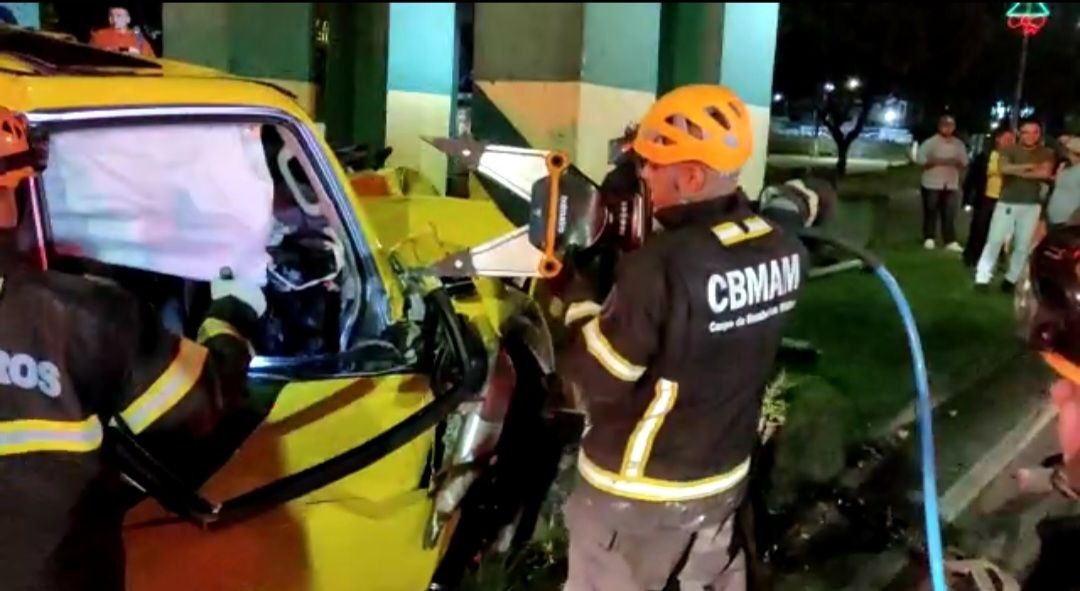 Uma equipe do Corpo de Bombeiros (CBMAM) foi acionada para retirar as vítimas das ferragens do veículo. Os socorristas tiveram que desligar a bateria do carro para evitar que uma faísca de energia provocasse risco de explosão. As portas dianteiras e o painel foram cortados para retirar a vítima fatal do interior do veículo.