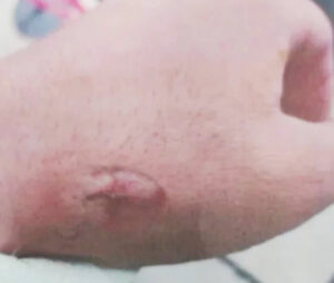 Revoltada, ela mordeu a mão do policial.