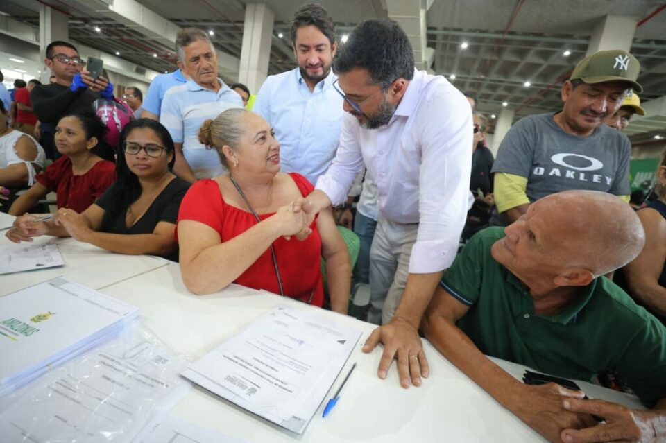 O governador Wilson Lima realizou nesta quinta-feira (13-jun), no Centro de Convenções Vasco Vasques, a assinatura oficial da regularização dos conjuntos habitacionais Nova República II e Viver Melhor IV, totalizando mais de 2,5 mil unidades habitacionais regularizadas.