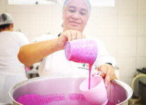 Para este teste, a pitaya foi incluída na vitamina de banana e servida in natura na merenda escolar.