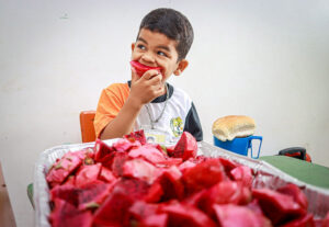 “Foi a primeira vez que eu comi pitaya, e eu gostei muito, já até peguei um pouco mais e guardei na bolsa para levar pra casa”, disse Natanael Carlos, de 11 anos, aluno do 5º ano da Escola Municipal Divino Espírito Santo.