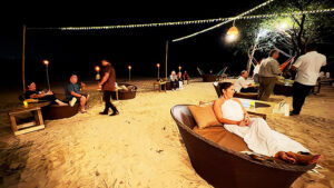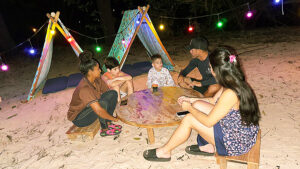 O Halloween dos Monstros Amazônicos inclui, para os adultos, um jantar Halluau na praia, com música ao vivo, apresentação de danças acrobáticas em tecido circense.