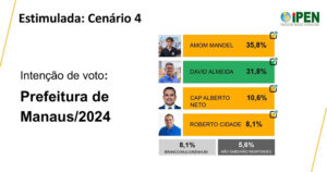 Os números são do Instituto de Pesquisa do Norte (IPEN), que ouviu 1 mil eleitores entre os dias 25 de março a 3 de abril. A margem de erro é 3% e foi registrada junto ao Tribunal Superior Eleitoral (TSE) com o número AM-01476/2024.