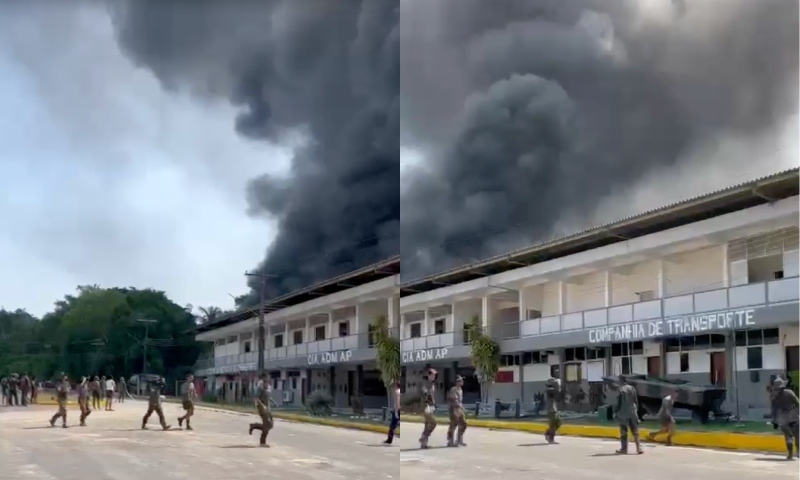 Um vídeo que circula nas redes sociais mostra o pânico e a correria dos militares lotados na base em meio as chamas. (Veja o vídeo)