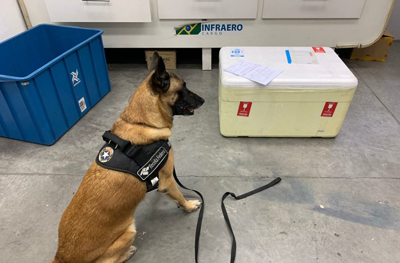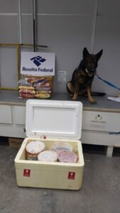 Ao suspeitarem que a carga continha drogas, a Equipe K9 da Polícia Federal foi acionada e, com a atuação dos agentes caninos Odin e Deco, se confirmou a suspeita.
