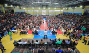 A Justiça Eleitoral foi ao ginásio onde acontecia a distribuição dos materiais e interrompeu a ação. Mais de três mil pessoas estavam no local e foram retiradas do ginásio.